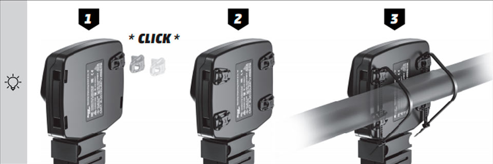 Use os grampos de fixação (incluídos) para fixar o RaceChip com abraçadeiras (enforca-gato) como na imagem abaixo: